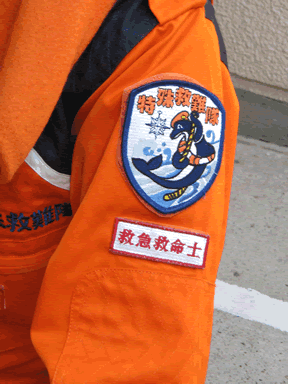 あ、その時に気付いたんですけど、救急救命士さんには、イルカさんの下にこんなワッペンも付けてました。